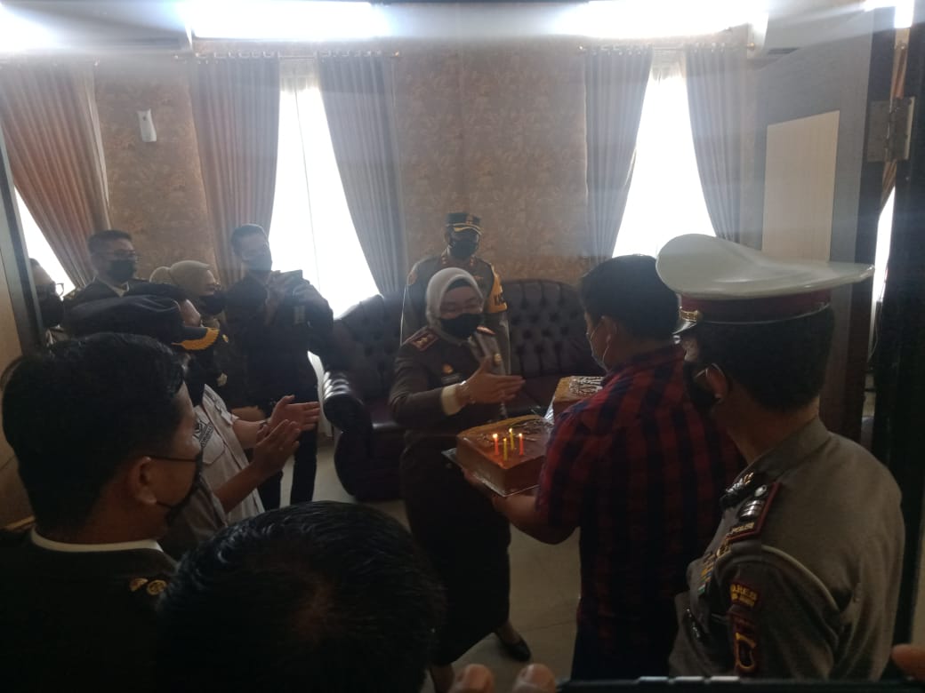 Disini Kapolres dan rombongan sengaja memberikan Suprise dengan mengunjungi Kantor Kejari sekaligus membawa kue tart