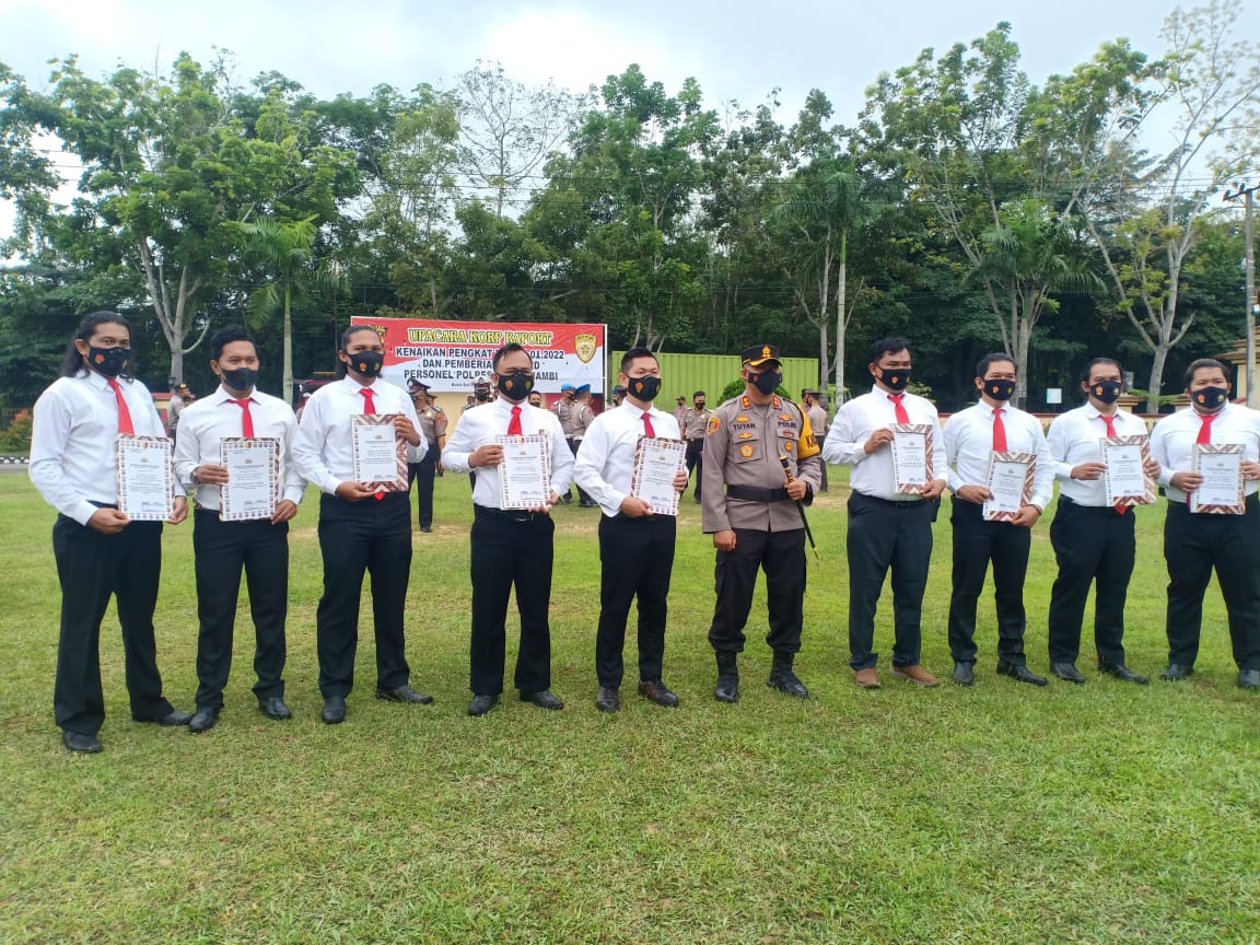 Pemberian reward oleh Kapolres Muaro Jambi AKBP yuyan Priatmaja S.I.K,.MH bertepatan dengan upacara kenaikan pangkat 42 Personil Polres Muaro Jambi