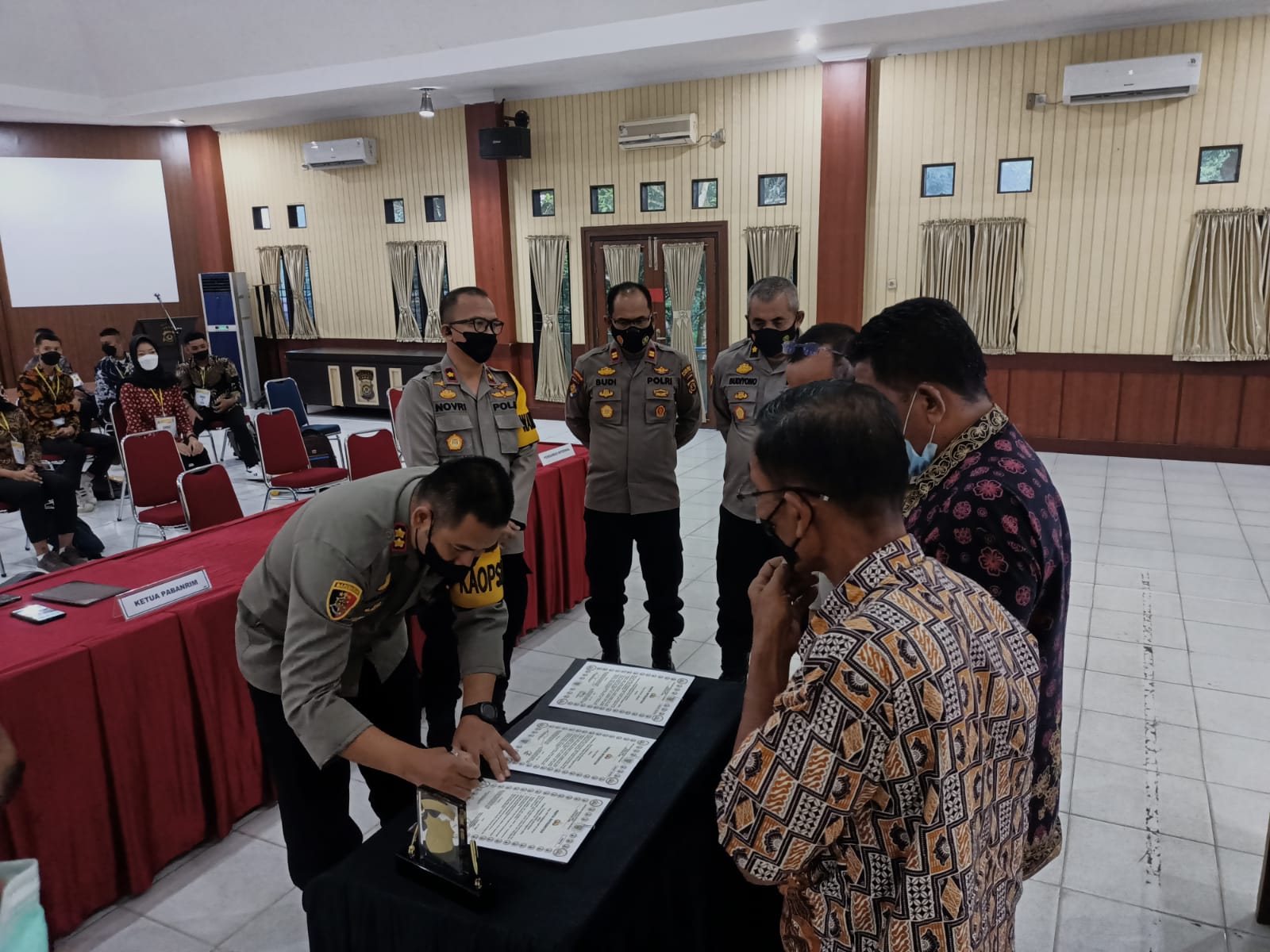Dan juga dihadiri Waka Polres Muaro Jambi Kompol Novrizal, S.Sos., M.H., Kabag Ren Kompol Budiyono., Kabag SDM AKP Erwandi, Kasi Propam IPTU Budi Prasetyo, Personil Bag SDM Polres Muaro Jambi, Perwakilan wali calon siswa 2 orang,dan Perwakilan calon siswa 23 orang.