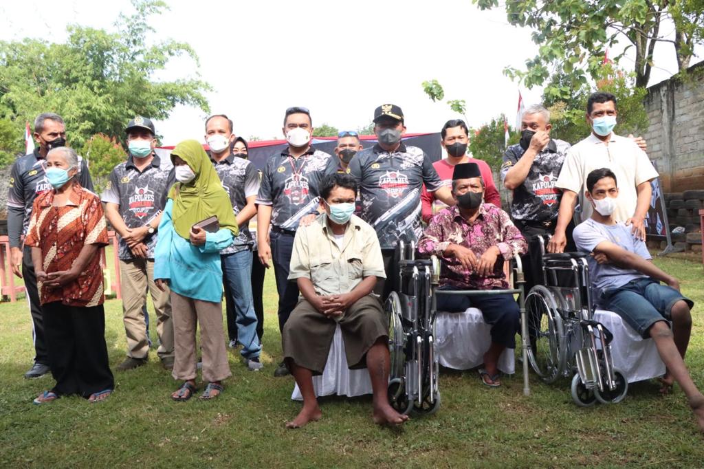 “Kursi roda dan sembako ini kami berikan kepada lima perwakilan penerima yang berdomisili di sekitar lapangan tembak. Ini hanya simbolis dan sisa bantuan lainnya akan dilanjutkan langsung kepada masyarakat yang membutuhkan. Tentunya bantuan ini diberikan kepada yang benar-benar berhak menerimanya,” ucap AKBP Boy Jeckson.