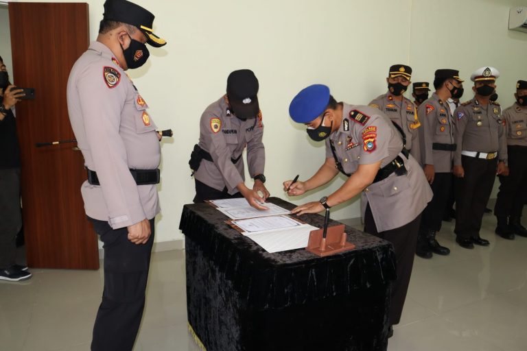 Serah terima jabatan berlangsung di Aula Sarja Arya Racana dipimpin langsung Kapolres Pangkalpinang AKBP Dwi Budi Murtiono, S,IK, M,H. Rabu (23/2/22).