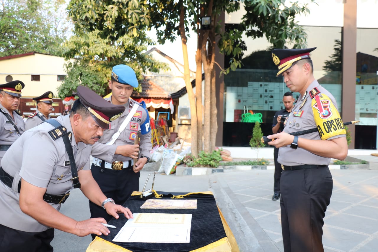 Kapolres Gresik AKBP Wahyu Sri Bintoro SH.S.I.K.M.Si. sebagai pimpinan upacara menyampaikan, pergantian pejabat atau mutasi jabatan di lingkungan Polri adalah merupakan hal yang biasa dan senantiasa harus terus bergulir sebagai bagian penting dari suatu tatanan manajemen dan dinamika organisasi Polri sekaligus juga merupakan indikator adanya suatu keberhasilan dalam pelaksanaan tugas.