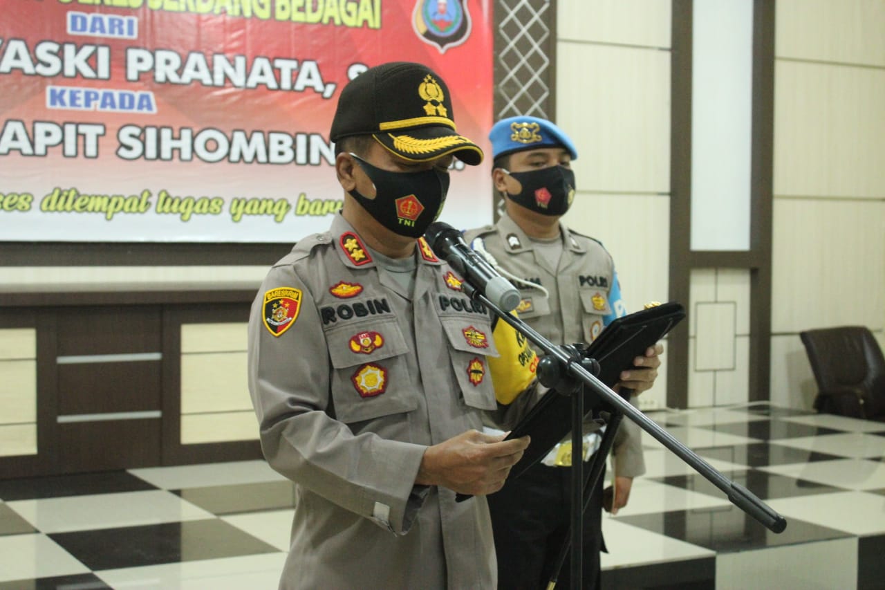 Hal itu ditegaskan Kapolres Sergai AKBP Robin Simatupang saat memimpin Sertijab Kasat Intel Polres Sergai AKP Bobi Vaski Pranata kepada AKP Luhut Bapit Sihombing, di Aula Pratiatama Mapolres Sergai, Selasa (13/10).