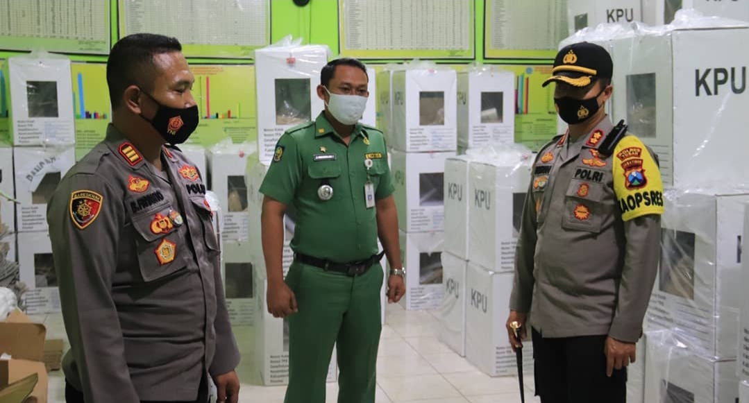 Tuban,maspolin.id- Dua hari menjelang peleaksanaan pemungutan Suara Pilkada serentak tahun 2020 pada 9 Desember mendatang, Kapolres Tuban AKBP Ruruh Wicaksono,S.I.K., S.H., M.H melakukan pengecekan logistik pilkada yang berada di masing-masing Panitia Pemilihan Kecamatan (PPK).