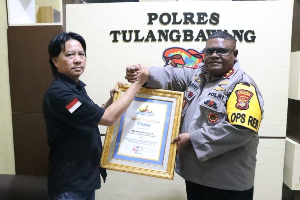 “Penghargaan ini kami berikan kepada Kapolres Tulang Bawang atas dedikasi dan prestasinya menurunkan angka kriminalitas, menjaga kondusifitas, pemberantasan narkoba, serta inovasi kemudahan pembuatan SIM dan keberhasilan dalam mengungkap beberapa kasus besar di Kabupaten Tulang Bawang,” kata Wawan Nunyai sapaan akrabnya.