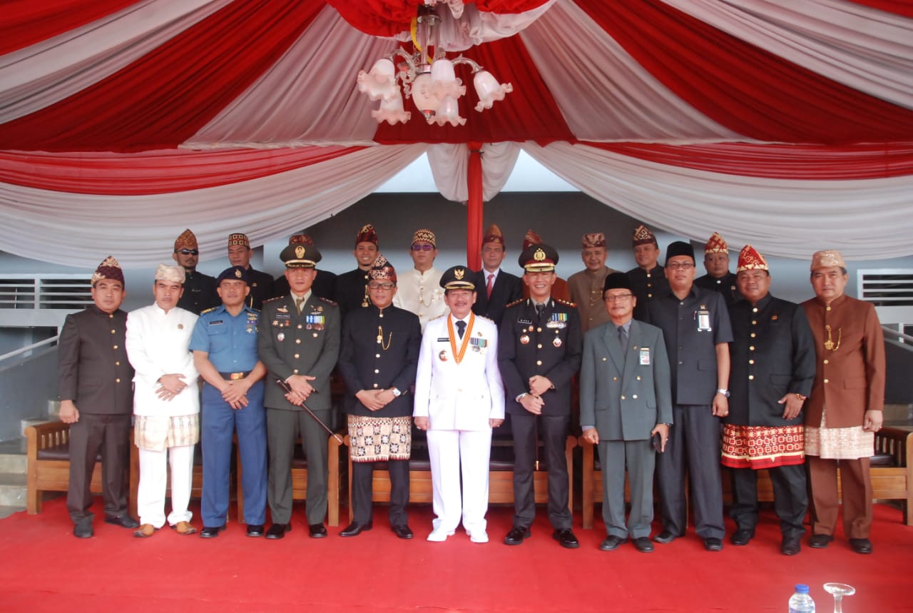 Lampung,Maspolin.id – Kota Bandar Lampung. Kapolresta Bandar Lampung Kombes Pol Wirdo Nefisco,S.I.K.,M.Si bersama Forkopimda Kota Bandar Lampung menghadiri upacara peringatan HUT Kota Bandar Lampung ke-337 tahun 2019 , bertempat di Stadion Pahoman Kota Bandar Lampung, Senin (17/06/2019).