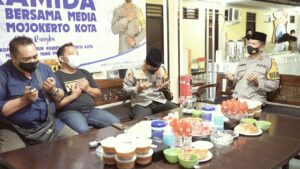 maspolin.id, Mojokerto – Menjalin sinergi dan silaturahmi, Kapolresta Mojokerto AKBP Rofiq Ripto Himawan menggelar Program Kapolda Jatim PIRAMIDA (Ngopi Bersama Media) dan dilanjutkan dengan buka bersama di Joglo Samapta Polresta Mojokerto. Rabu (20/04/22) sore.