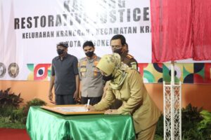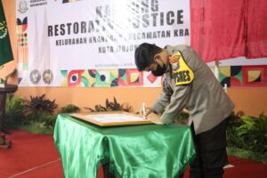 “Jika memungkinkan tentu tidak hanya kranggan, bagaimana kedepannya 18 kelurahan yang ada di Kota Mojokerto ini bisa diinisiasi menjadi Kampung Restorative Justice sehingga dengan demikian masyarakat kita lebih memiliki kepastian hukum terkait hal-hal yang dalam hal ini pelanggaran kategori ringan bisa diupayakan secara kekeluargaan dengan mengedepankan budaya ketimuran,” pungkasnya.