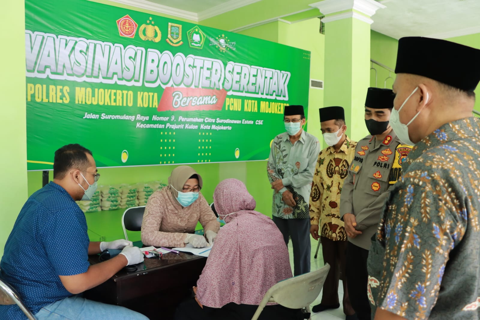Sementara itu pelaksanaan vaksinasi di Mojokerto dipantau langsung oleh Kapolresta Mojokerto AKBP Rofiq Ripto Himawan, S.I.K., S.H., M.H didampingi Wakapolresta Mojokerto KOMPOL Dr. Sarwo Waskito, S.Sos, S.H, M.Hum, M.M dan Pejabat Umum Polresta Mojokerto serta Sekretaris, Wakil Rois, dan Bendahara PCNU Kota Mojokerto