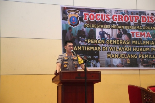 Kapolrestabes Medan Kombes Pol Dr Dadang Hartanto SH,SIK,MSi mengatakan Melalui focus Group Discusion pada saat ini,di era demokrasi tentunya kedepan tetap mempermudah konsep demokrasi kemudian juga bagaimana konsep demokrasi ini dapat menjadikan negara kita tetap maju yang bertujuan menjadi negara yang adil,makmur dan Sejahtera.