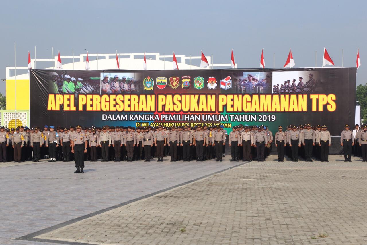 Amanat Kapolrestabes Medan Kombes Pol Dr Dadang Hartanto,SH,SIK,MSi dalam Apel Pergeseran Pasukan Pengamanan Tps ini,Saya ingatkan kembali bahwa pengamanan TPS ini merupakan rangkaian dari kegiatan kita mengamankan pemilu tahun 2019.Sebagai suatu pesta demokrasi yang diselenggarakan untuk memilih pimpinan nasional maupun perwakilan legislatif.