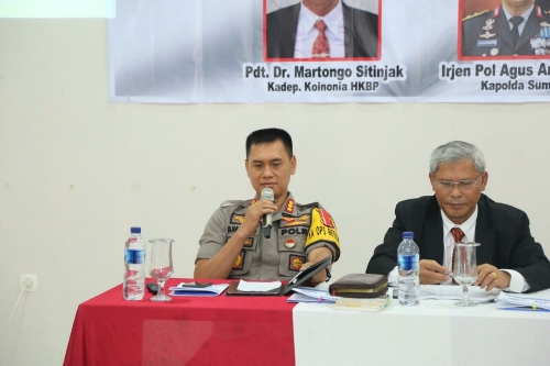 Dalam Seminar ini Sebagai pembicara Kapolrestabes Medan Kombes Pol Dr Dadang Hartanto,SH,SIK,MSi,Kadep Koinonia Hkbp Pdt Dr Martongo