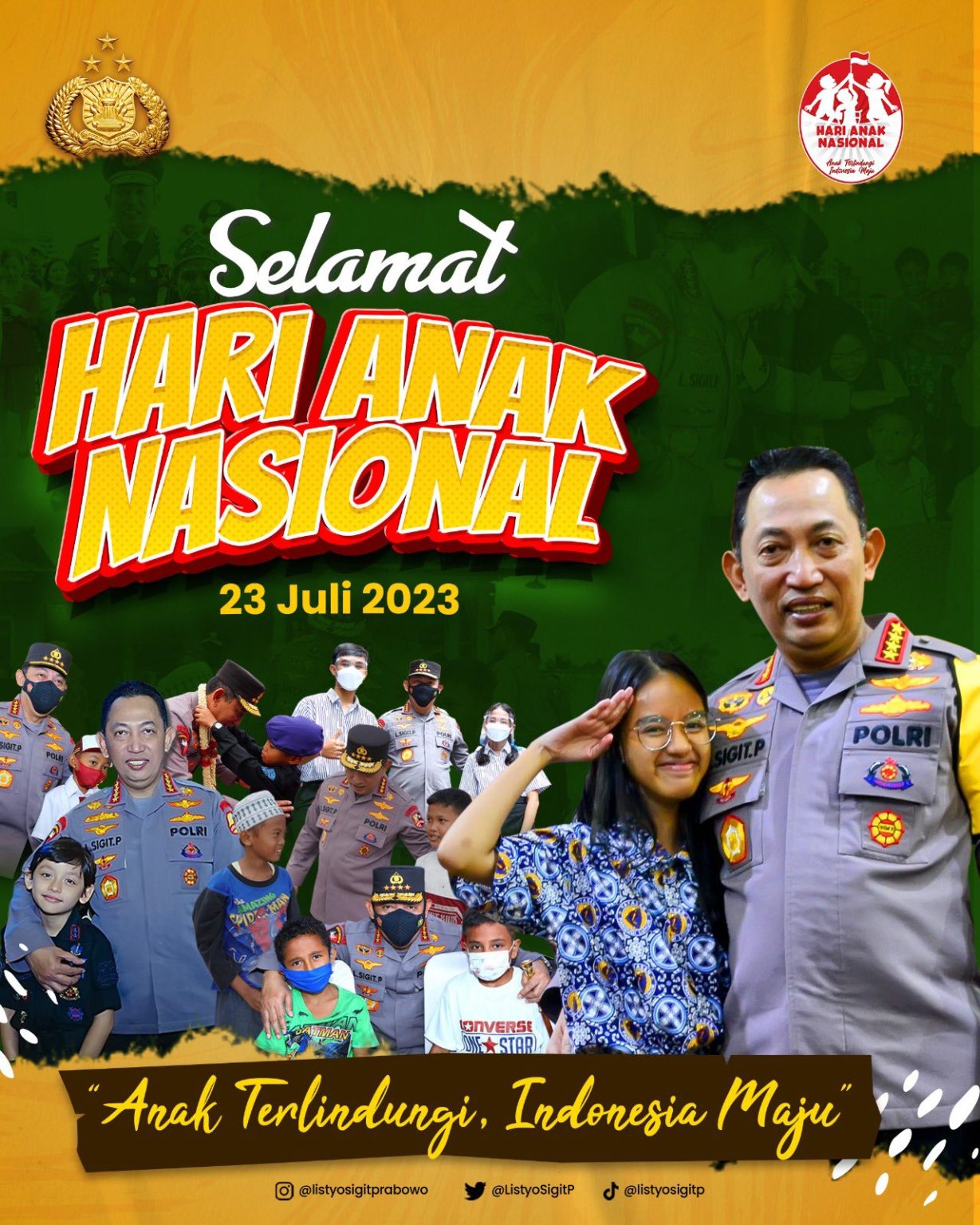 “Selamat Hari Anak Nasional,” tulis Kapolri dalam unggahan instagramnnya, dikutip Senin (24/7).