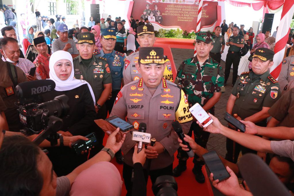 “Sempat tadi ada sedikit aksi dari beberapa kelompok masyarakat. Namun, setelah itu bisa diantisipasi,” kata Kapolri usai menghadiri Deklarasi Pemilu Damai dan peresmian fasilitas baru di Mapolda Jatim, Surabaya, Kamis (28/12/2023).