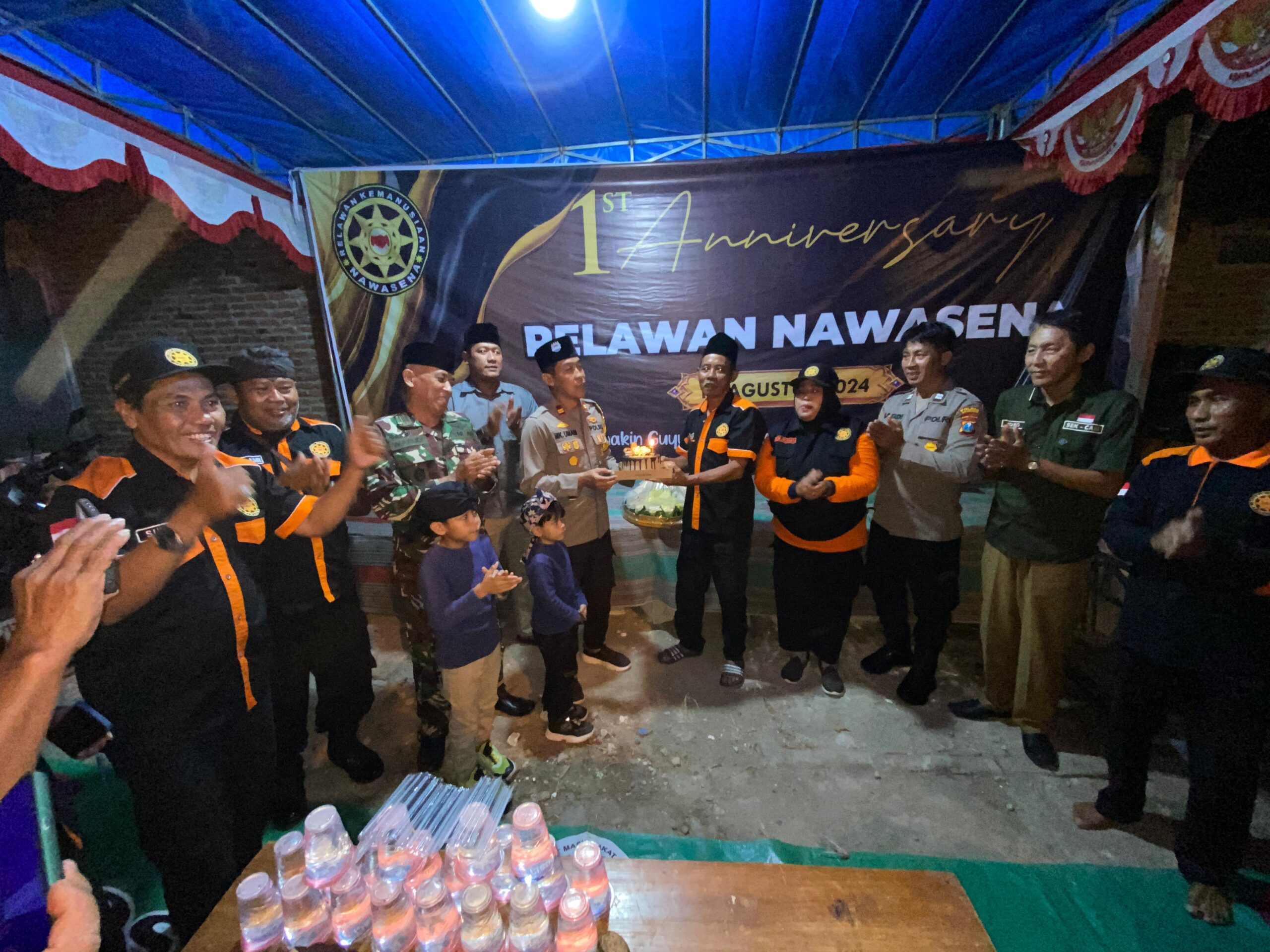 Mojokerto – Maspolin.id|| Kapolsek Dlanggu IPTU M Khoirul Umam SE MH menghadiri acara ulang tahun Relawan Nawasena ke-1 tahun 2024, acara Anniversary yang pertama tersebut diadakan di rumah ketua Relawan Nawasena bapak Sulaeman dengan dihadiri oleh seluruh anggota relawan, Rabu (14/8/2024).