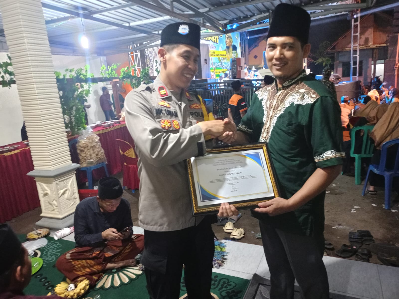 Mojokerto – Maspolin.id|| maspolin.id– Kapolsek Dlanggu IPTU M Khoirul Umam SE MH mendapatkan apresiasi berupa penghargaan dari jamaah sholawat atas kerjasamanya dalam mensukseskan dan mengamankan kegiatan Sambilawang Bersholawat bersama Habib Fahmi bin Tohir Al Habsy yang diadakan di Dsn. Sengon, Ds. Sambilawang, Kec. Dlanggu, Kab. Mojokerto, (Selasa, 11/6/2024).
