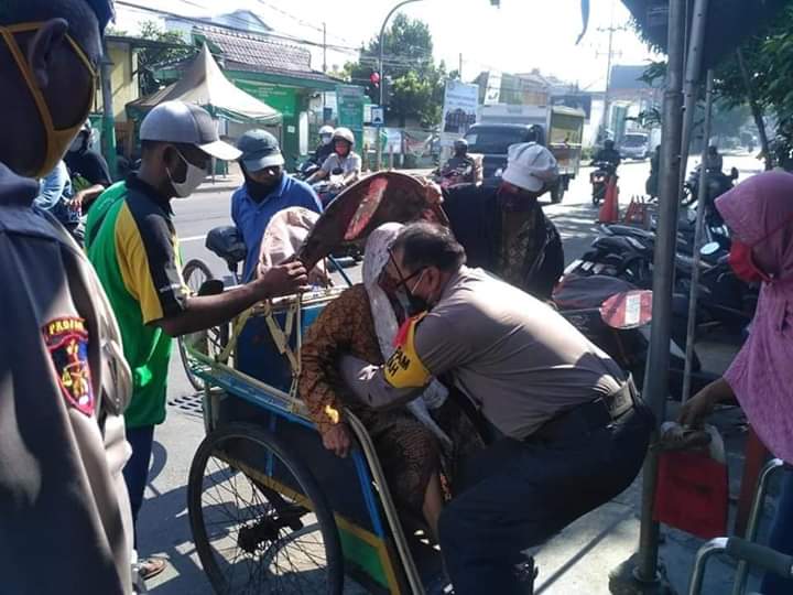 Saat lakukan pengamanan dan memonitoring penyaluran Bantuan Sosial Tunai ( BST ) di Kantor Pos Jalan Raya Mastrip Kecamatan Karang Pilang Surabaya, Kapolsek Karang Pilang Polrestabes Surabaya Kompol Samsul Hadi. SH. melihat dan mendapati salah seorang warga tua renta dengan naik becak, dan juga karena faktor usia saat turun dari becak guna antri untuk menerima bantuan BST.
