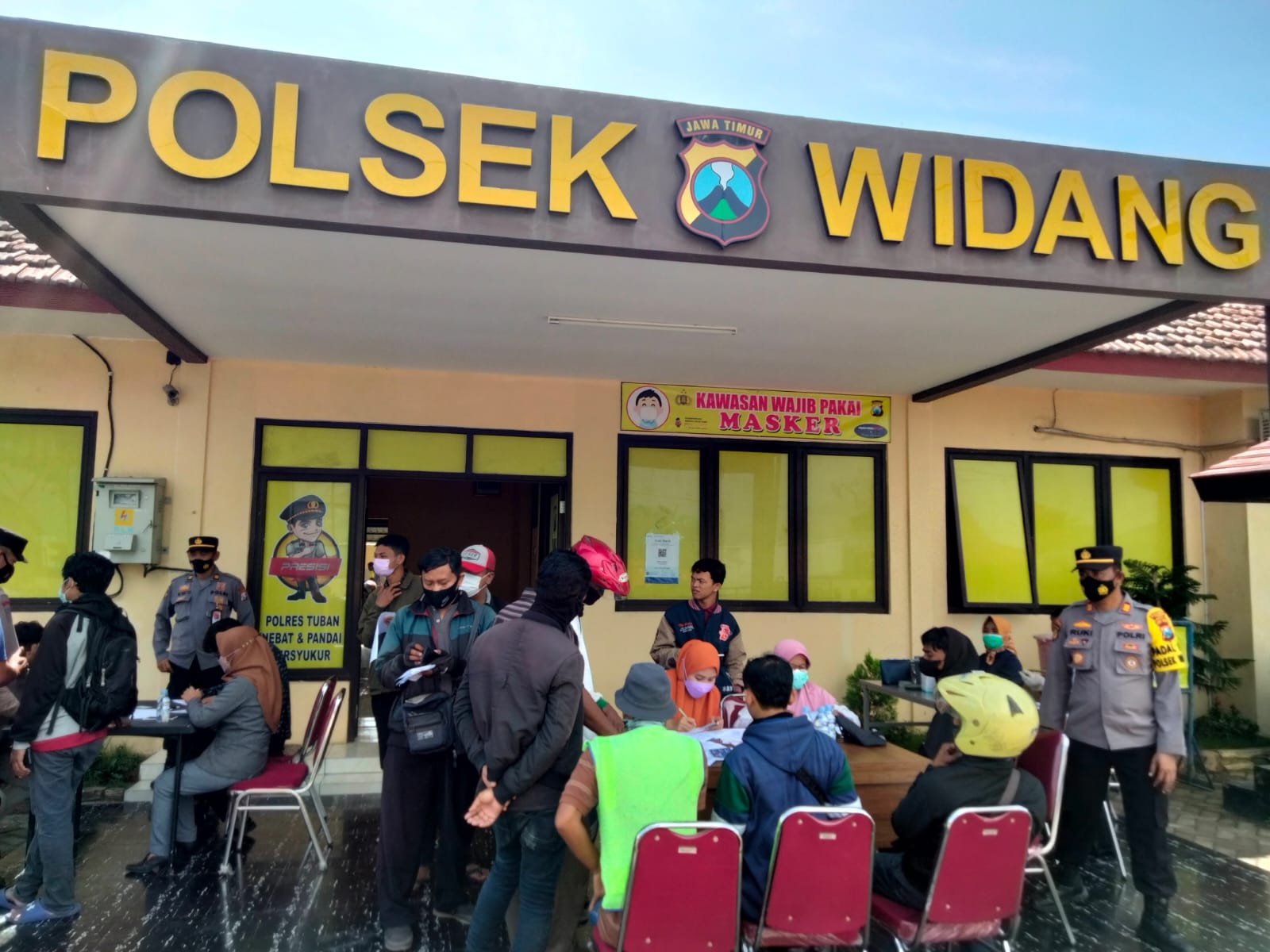 “Adapun Petugas yang melaksanakan operasi adalah personil dari Polsek Widang, personil dari Koramil 0811/08, personil Satpol PP Kecamatan Widang dan didukung Tim Nakes Puskesmas Compreng sebagai Vaksinator.