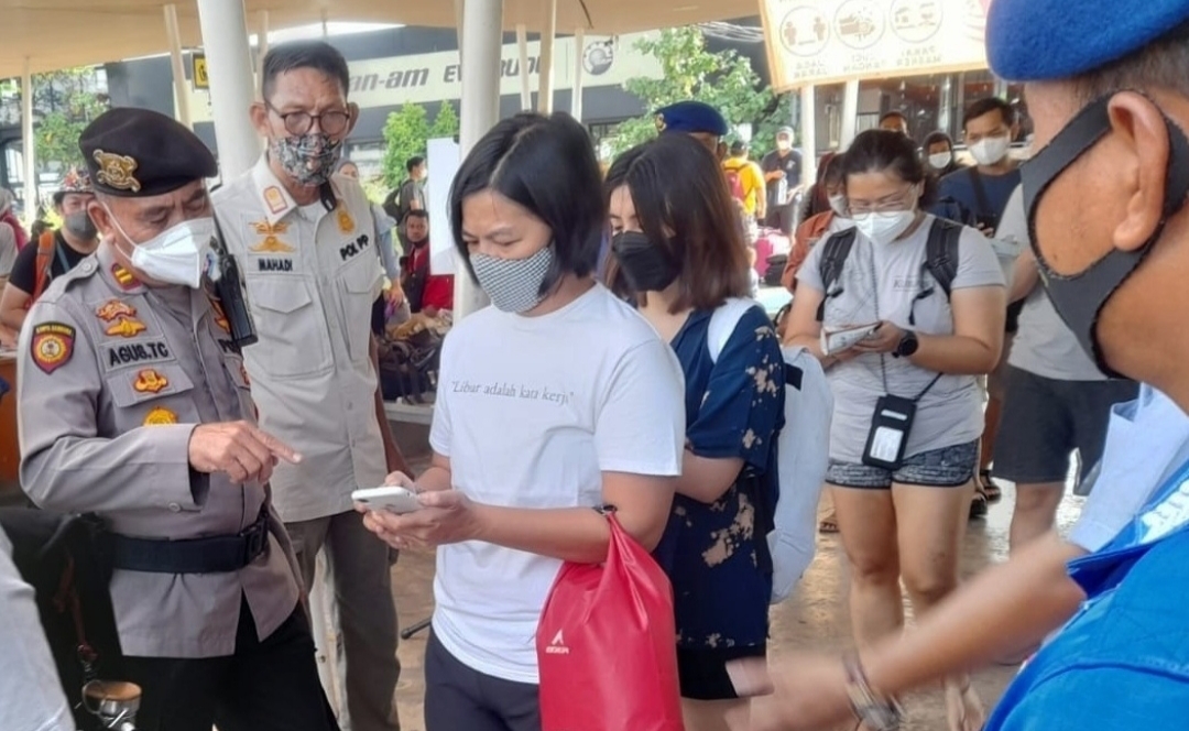 Jakarta – Maspolin.id|| Sejumlah 650 warga dan wisatawan pagi ini ke Pulau Seribu melalui Dermaga Keberangkatan Marina Ancol mendapat pengawasan ketat protokol kesehatan dan diwajibkan scanning barcode aplikasi peduli lindungi oleh personel Polres Kepulauan Seribu, Sabtu (20/11).