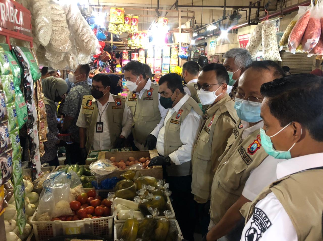 MASPOLIN || SURABAYA,- Menjelang Hari Raya Idul Fitri 1422 H, Satgas pangan Daerah Jawa Timur, yang dipimpin oleh Direktur Kriminal Khusus (Dirreskrimsus) Polda Jatim Kombes Pol Farman, selaku kasatgas pangan daerah jatim, bersama dengan Kepala Dinas Perdagangan, Kepala Dinas Pertanian, Kepala Dinas Perkebunan, Selasa (11/5/2021) pagi, melakukan pengecekan harga bahan pokok di pasar Tambakrejo, Surabaya.