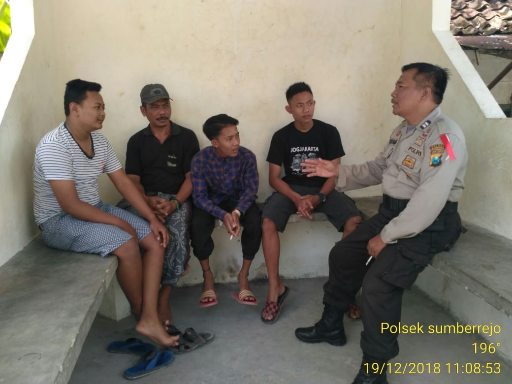 Bojonegoro,Maspolin.id – Dalam rangka bangun kesadaran dan partisipasi masyarakat terhadap kamtibmas Kanit Humas Polsek Sumberrejo Polres Bojonegoro Aiptu Sutaji bersama Brigadir Ahmadin Jagongan sampaikan himbauan dan pesan kamtibmas, Kamis (19/12/2018)