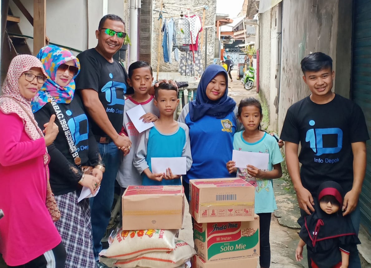MASPOLIN.ID.-PANCORAN MAS, DEPOK- Ketua LSM KAPOK, Kasno melakukan Bakti Sosial (Baksos) ke Kp. Lio RW 013, Kelurahan Depok, Kecamatan Pancoran Mas Depok dengan membagikan langsung bantuan berupa 1 dus indomie dan beras untuk anak yatim piatu dan janda, Jumat (03/01/2020).