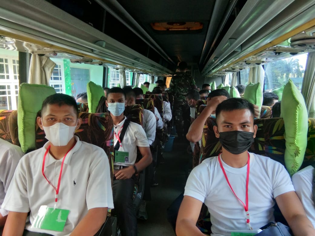 Jambi – Maspolin.id// Kasrem 042/Gapu Kolonel Inf M. Yamin Dano melepas keberangkatan 156 orang Peserta Seleksi Calon Tamtama Prajurit Karier TNI AD Gelombang II tahun 2021 asal Sub Panitia Daerah (Panda) Korem 042/Gapu, untuk mengikuti seleksi tingkat pusat di Secata Rindam II/Sriwijaya Kab. Lahat Prov. Sumsel. Selasa (26/10/2021).