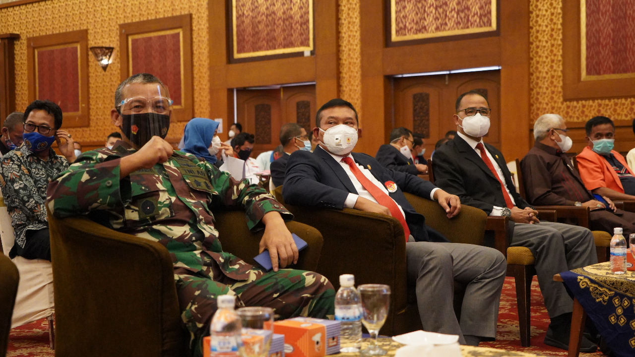 Jambi, Maspolin.id—Danrem 042/Garuda Putih Brigjen TNI M. Zulkifli, S.I.P, M.M diwakili Kasrem Kol Kav Rayen Obersyl menghadiri Musyawarah Olahraga Provinsi (Musorprov) KONI Provinsi Jambi tahun 2020, di Abadi Suitte Hotel Jambi, Selasa (22/12).