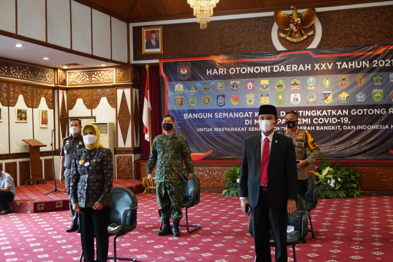 Hari otonomi daerah Ke-XXV mengangkat Tema “Bangun semangat kerja dan tingkatkan gotong royong di masa pandemi Covid-19 untuk masyarakat sehat, ekonomi daerah bangkit, dan Indonesia maju”.