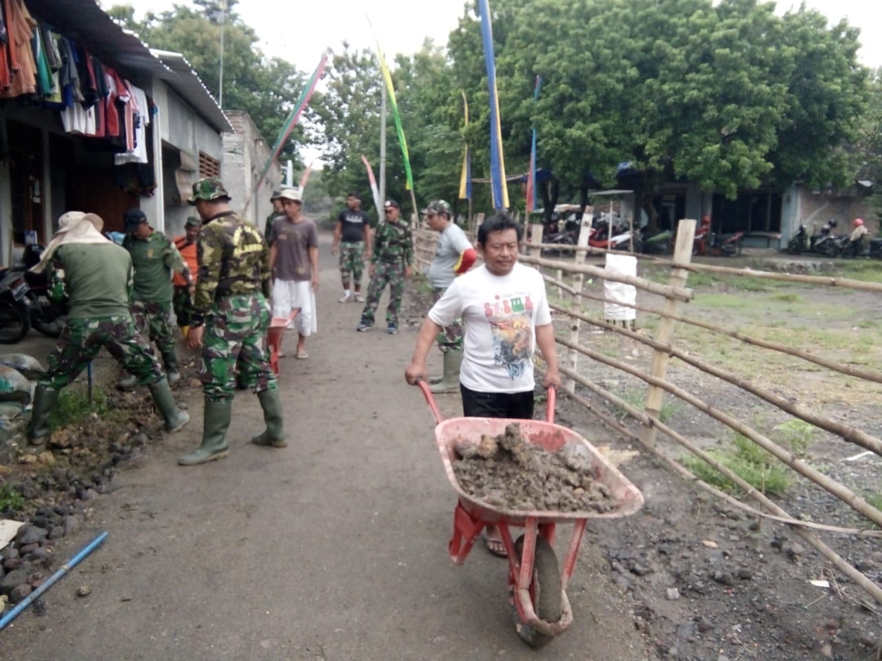 Seperti terlihat anggota TNI bersama warga Kerja Bakti dalam rangka TMMD Sengkuyung I TA. 2019 di RT. 03/39 Jati Rejo Mojosongo Jebres Surakarta. Minggu (3/3/19).