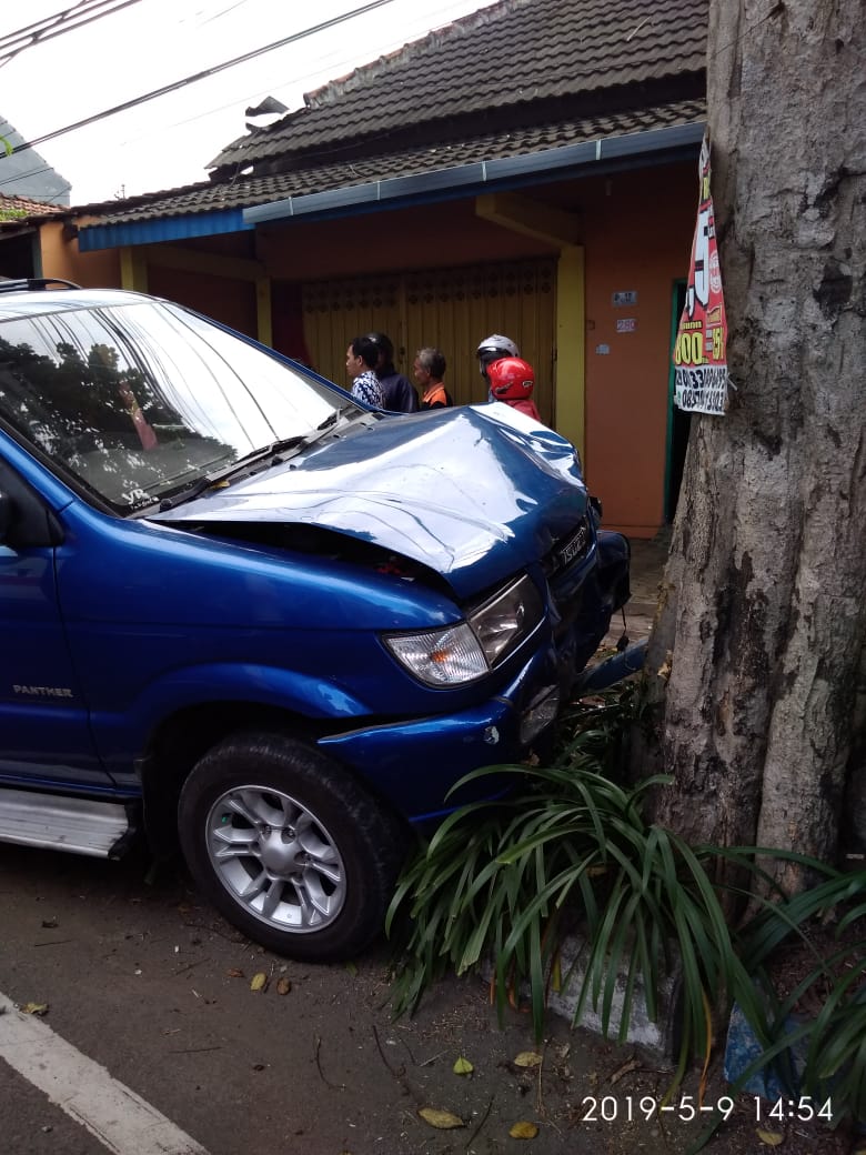 Diduga karena membanting stir kendaraan panther menabrak pejalan kaki yang tengah melintas dan selanjutnya menabarak motor honda supra hingga akhirnya terhenti setelah menabrak sebuah pohon.