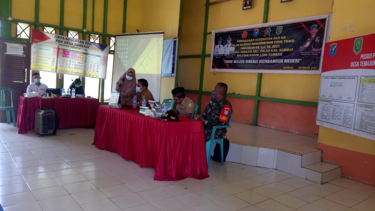 Sambas – Maapolin.id // Bertempat di Gedung Serbaguna Desa Temajuk, Kec. Paloh Kab. Sambas Anggota Satgas TMMD Imbangan Ke-112 Kodim 1208/Sambas melaksanakan Penyuluhan Kesehatan dan KB, Senin (11-10-21)