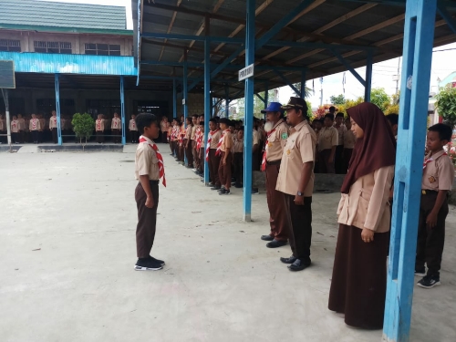 Saat apel pembuka di pimpin oleh kakak sujono, dan di dampingi oleh pembina lain seperti kak wahyuni, kak kamarudin, kak masruri, kak fahrullah, serta di pantau langsung oleh kepala sekolah yaitu pak Kewa Aman Raden.