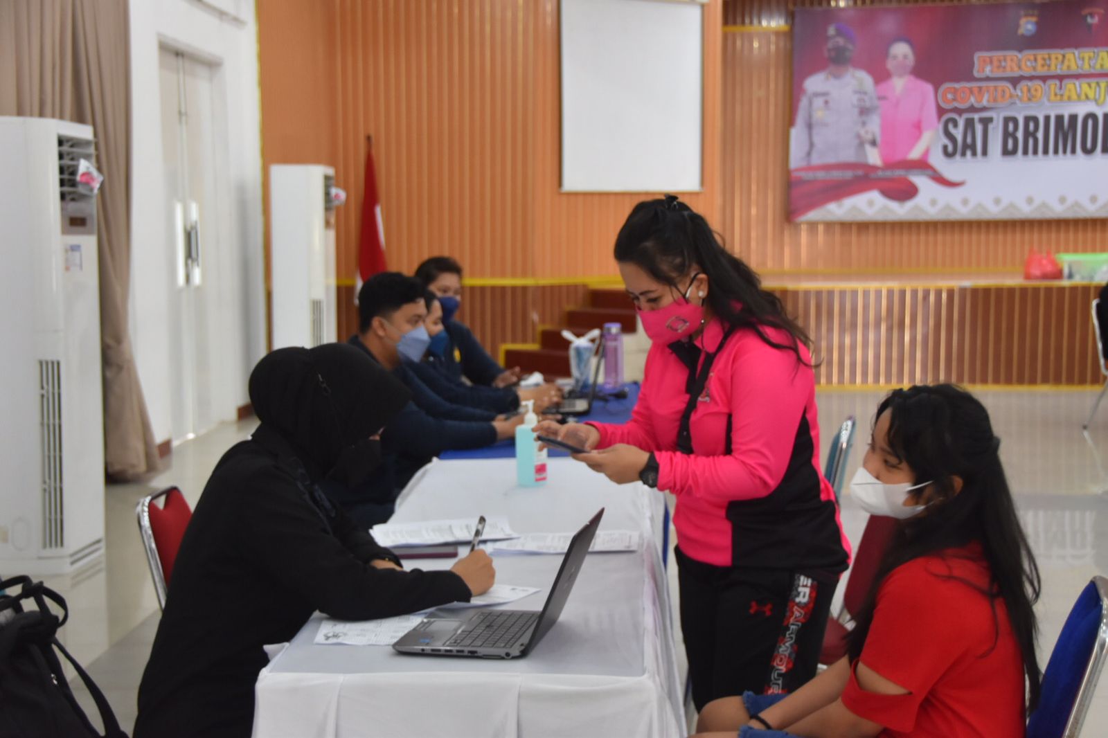 Kejar Bebas Corona, Semangat Vaksinasi Terasa Digerai Sat Brimob Polda Riau