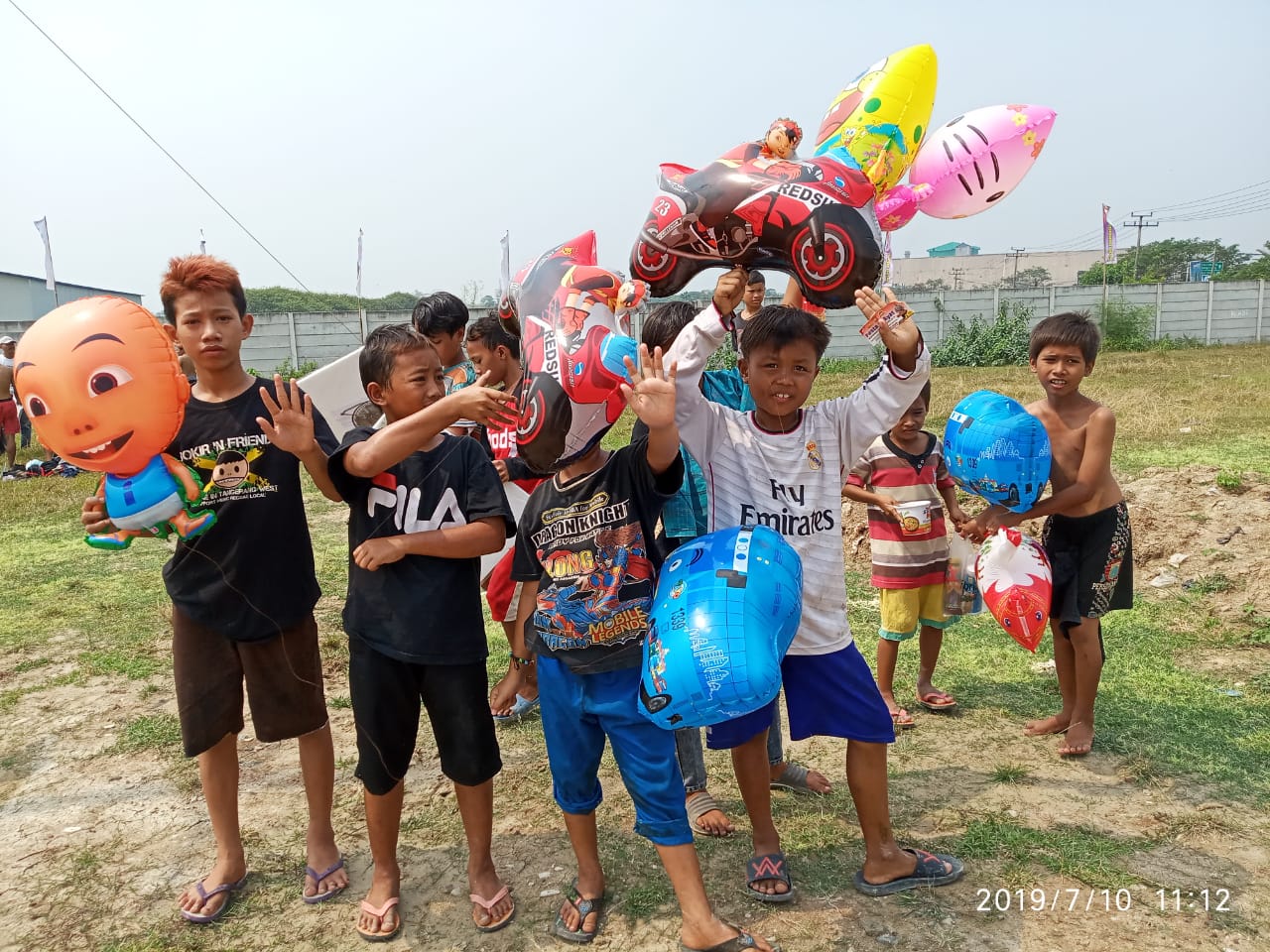 Sontak anak-anak saling berebutan, ketika tahu ada yang membagi balon.