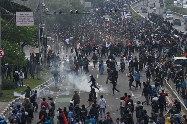 Dari kejadian itu, beberapa petugas mengalami luka-luka akibat terkena lemparan batu dan besi.