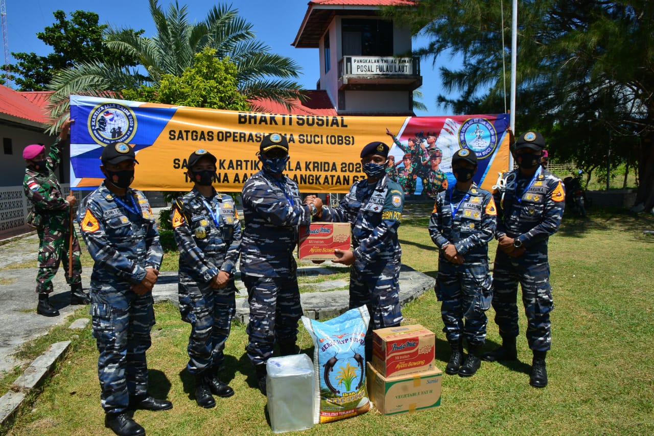 Mereka menyerahkan bantuan berupa Alkes dan sembako kepada Danpos Pulau Sekatung Letda Inf B Saragih dan Serma Marinir Hendra Wijaya serta Danposal pulau Laut yang diwakili oleh Babinpotmar Serma Bah Sarno dan Babimkamtipmas Bripka Wahyudi.