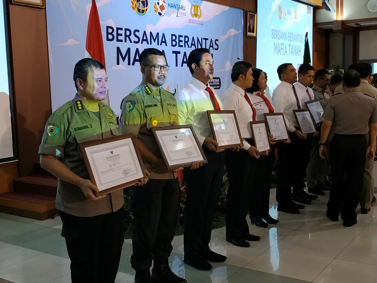 Penghargaan dan apresiasi dari Menteri ATR/ BPN RI kepada Tim Satgas Mafia Tanah Provinsi Banten, yang diterima Irwasda Polda Banten Kombes Pol I Nyoman Labha mewakili Kapolda Banten yang didampingi oleh Kasatgas Pemberantasan Mafia Tanah AKBP Sofwan Hermanto, bersama 16 anggotanya.