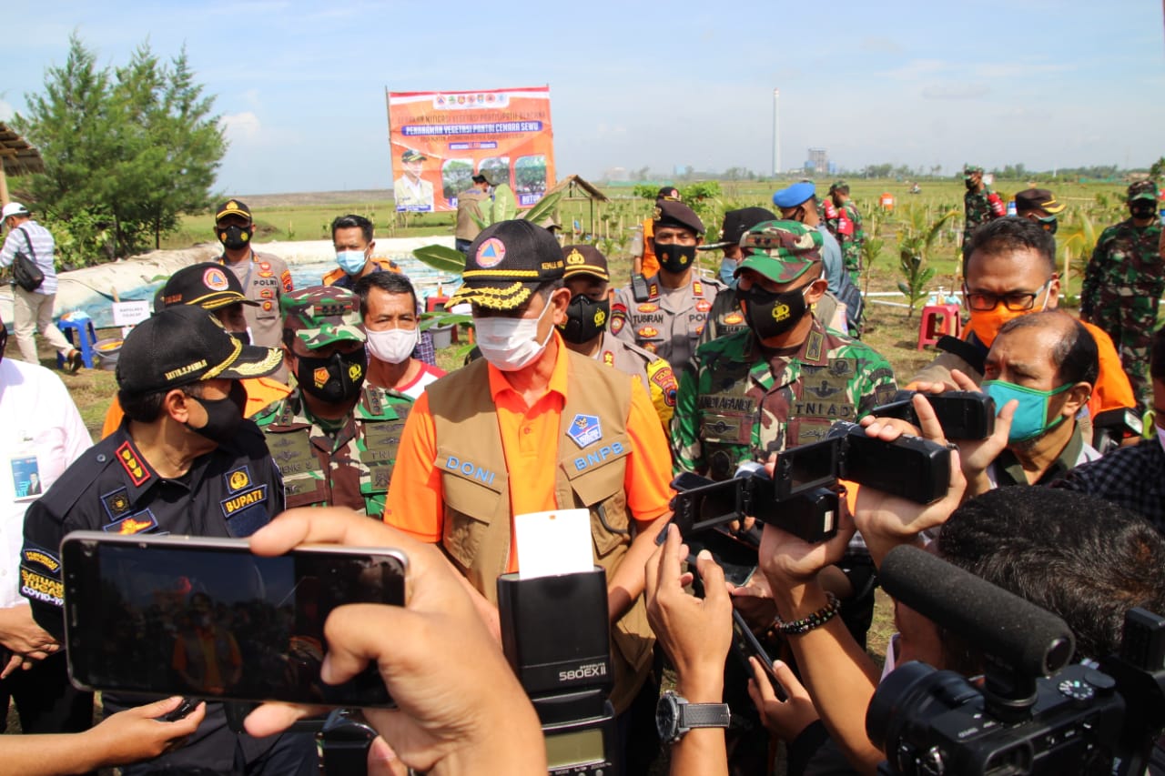 Maspolin.id, Cilacap – Kepala Badan Nasional Penanggulangan Bencana (BNPB) Republik Indonesia Letjen TNI Dr (H.C) Doni Monardo melaksanakan kunjungan kerja ke wilayah Kabupaten Cilacap dalam rangka gerakan Mitigasi Vegetasi Partisipatif, berupa kegiatan penghijauan dengan menanam berbagai pohon vegetasi di Pantai Cemara Sewu, Desa Bunton, Kecamatan Adipala, Kabupaten Cilacap, Jawa Tengah, Rabu (28/4/21).