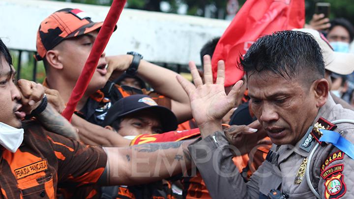 JAKARTA – Maspolin.id|| Sebanyak 20 anggota ormas yang diduga terlibat pengeroyokan AKBP Dermawan Karosekali diamankan Polda Metro Jaya . Dari jumlah tersebut sebanyak 9 orang ditetapkan sebagai tersangka terkait pengeroyokan yang terjadi saat ormas dari Pemuda Pancasila (PP) menggelar unjuk rasa di Gedung DPR, Jakarta, pada Kamis (25/11/2021) siang.