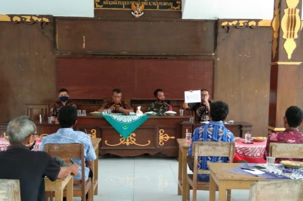 Maspolin.id, Cilacap – Serka Sudarto, Babinsa Koramil 14/Cimanggu menghadiri undangan musyawarah pengadaan pupuk bersubsidi dan kartu tani yang diselenggarakan Pemerintah Desa Karangreja Kecamatan Cimanggu bertempat di balai desa setempat, Rabu (20/1/2021).