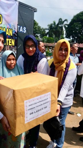 PANDEGLANG – Ketua Bhayangkari Daerah Banten Ny Niken Tomsi Tohir beserta pengurus laksanakan kegiatan pemberian bantuan berupa uang tunai, alat-alat sekolah dan sembako kepada korban tsunami selat sunda di kantor Desa Sukarame Kecamatan Carita Pandeglang, Rabu (09/01/2019) Pukul 09.00 WIB