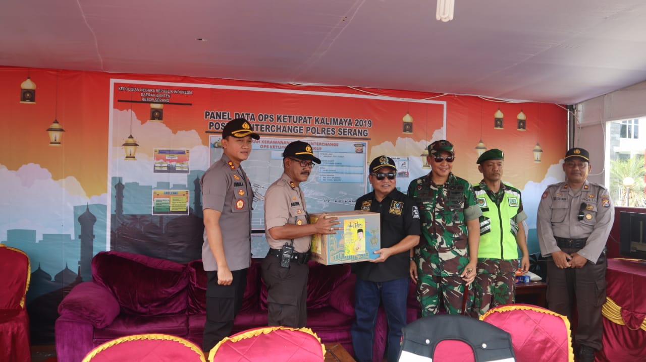 SERANG,Maspolin.id – Ketua DPRD Kabupaten Serang H. Muhsinin, didampingi Kapolres Serang AKBP Indra Gunawan, S.I.K., MH, dan Dandim 0602/Serang Letkol Inf Erwin Agung, berikan bantuan parcel kepada personel jaga Pospam Ketupat Kalimaya 2019 wilayah hukum Kabupaten Serang, Selasa (4/6/19).