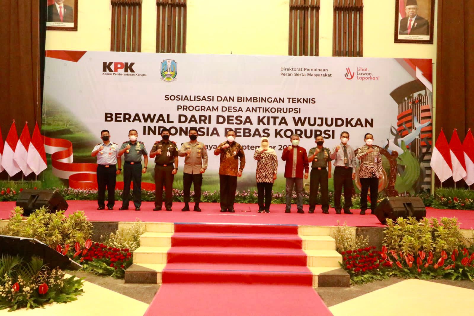 Pelaksanaan Pembukaan Sosialisasi dan bimbingan teknis desa antikorupsi kepada seluruh Kepala Desa di Prov. Jawa Timur oleh KPK RI dengan tema “Berawal Dari Desa Kita Wujudkan Indonesia Bebas Dari Korupsi.”