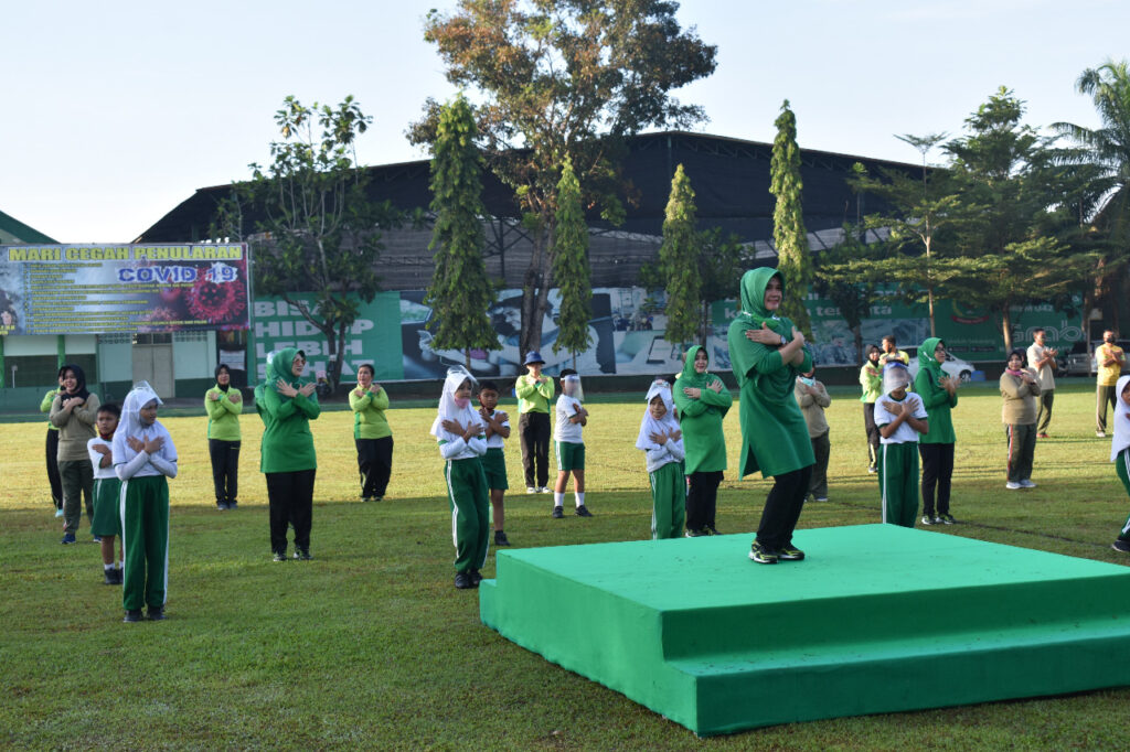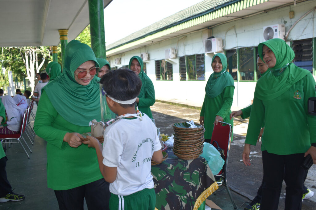 Jambi, Maspolin.id—Dalam rangka memperingati Hari Anak Nasional tahun 2020, Ketua Persit KCK Koorcab Rem 042 PD II/Sriwijaya sekaligus Ketua Yayasan Kartika Jaya Koordinator Korem 042/Gapu Ny. Dewi M. Zulkifli berbagi ceria bersama anak-anak SD Yayasan Kartika Jaya.