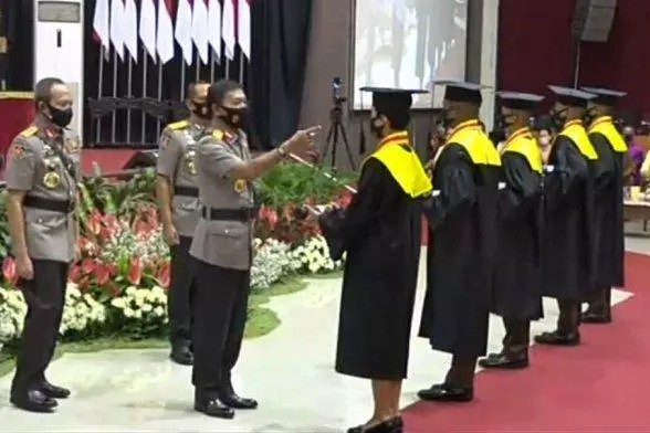 Dalam acara wisuda tersebut sederet pejabat kepolisian hadir, termasuk Kapolres Jenderal Idham Azis.