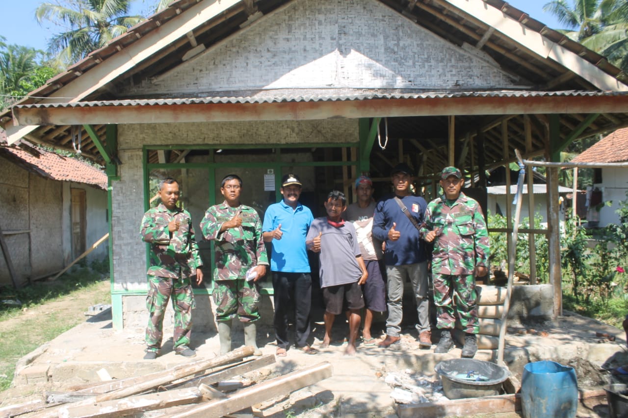 Teknisi yang juga anggota Satgas TMMD Sengkuyung Tahap II tahun 2019, Sertu Basuki bersama Kades Cimrutu Surip Riadi, mendatangi salah satu pemilik rumah yang akan direhab, yakni Sukanda, warga RT 02 RW 03 Dusun Cimrutu, Desa Cimrutu, Minggu (14/7/2019).