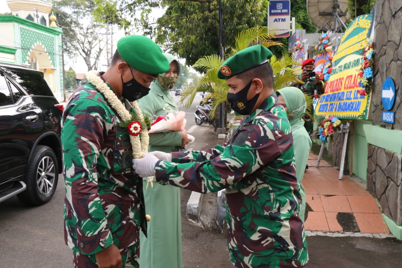 Acara penyambutan diawali dengan pengalungan bunga dan pemberian bunga tangan kepada Letkol Inf Andi Afandi, S.I.P dan Ny. Ninda Andi Afandi yang juga resmi menjabat sebagai Ketua Persit KCK Cabang XVIII Dim 0703/Cilacap Kasdim 0703/Cilacap beserta Ibu, dan menerima jajar kehormatan oleh regu jaga Kesatrian Kodim 0703/Cilacap.