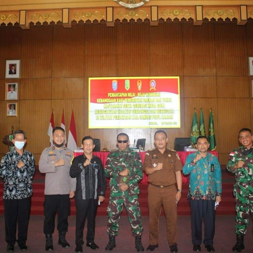 Sambas – Maspolin.id //  Guna meningkatkan Kualitas Berbangsa Dan Bernegara Di Wilayah Perbatasan Kab. Sambas, Kodim 1208/Sambas bersinergi dengan Pemkab Sambas Gelar Sosialisasi Pemantapan Wawasan Kebangsaan Bagi Pemerintah Daerah Dan Tokoh Masyarakat serta Generasi Muda, yang diselenggarakan di aula kantor Bupati Sambas Jalan Pembangunan, Desa Dalam Kaum, Kec. Sambas, Kab. Sambas, (11/11/21)