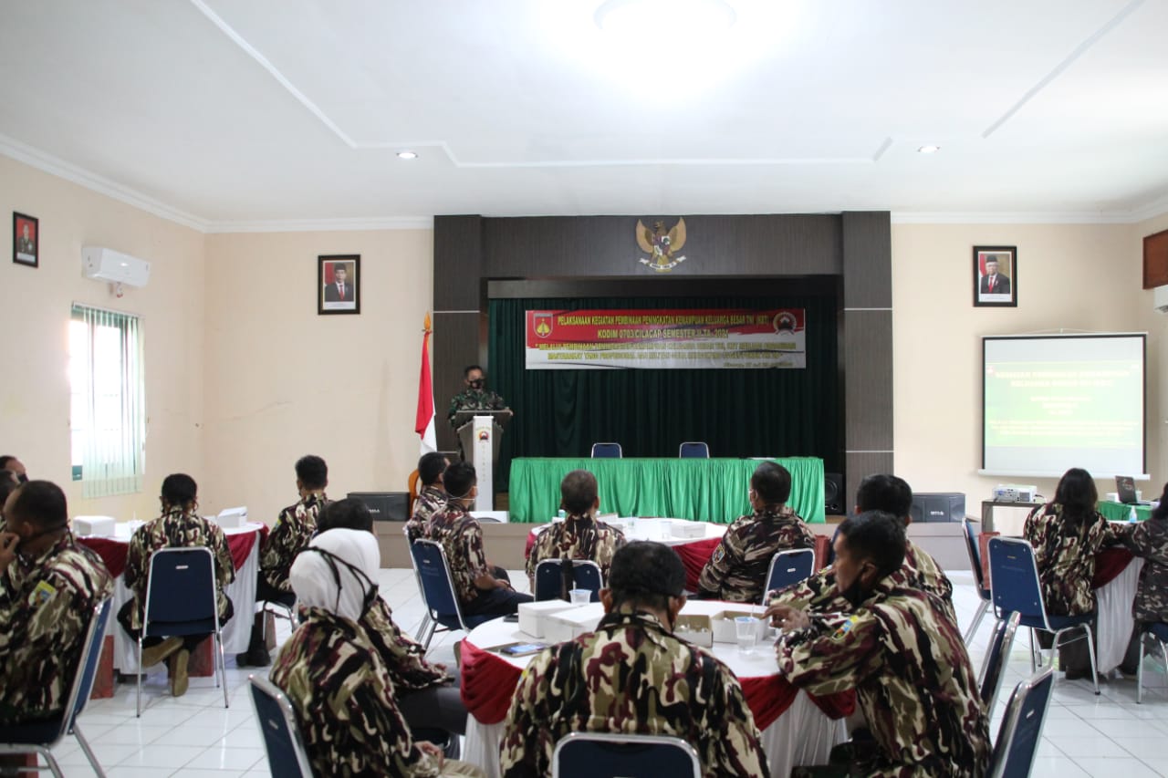 Cilacap,maspolin.id- Dalam rangka meningkatkan kemampuan Keluarga Besar TNI sebagai bagian dari komponen pertahanan dalam upaya pembelaan negara, Kodim 0703 Cilacap menggelar kegiatan Pembinaan Peningkatan Kemampuan Keluarga Besar TNI Semester II Tahun 2021.